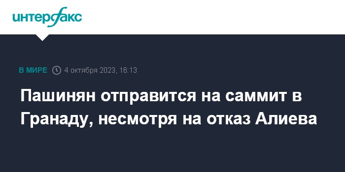 Пашинян отправится на саммит в Гранаду, несмотря на отказ Алиева