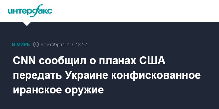 Москва. 4 октября. INTERFAX.RU - Власти США намерены направить Украине иранское оружие и боеприпасы, ранее конфискованные американскими военными на Ближнем Востоке, сообщает в среду CNN со ссылкой на источники.