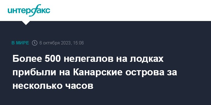 Москва. 6 октября. INTERFAX.RU - Более 500 нелегальных мигрантов из стран Африки прибыли на лодках к берегам Канарских островов за последние несколько часов, сообщает агентство EFE.
