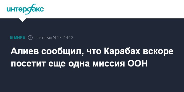 "На встрече было отмечено, что в ближайшее время под руководством постоянного резидента-координатора ООН в Азербайджане совместно со специализированными структурами организации в Карабах отправится еще одна миссия (первая миссия посетила Карабахский регион 1 октября - ИФ) и Азербайджан поддерживает этот процесс", - говорится в сообщении на сайте президента Азербайджана.