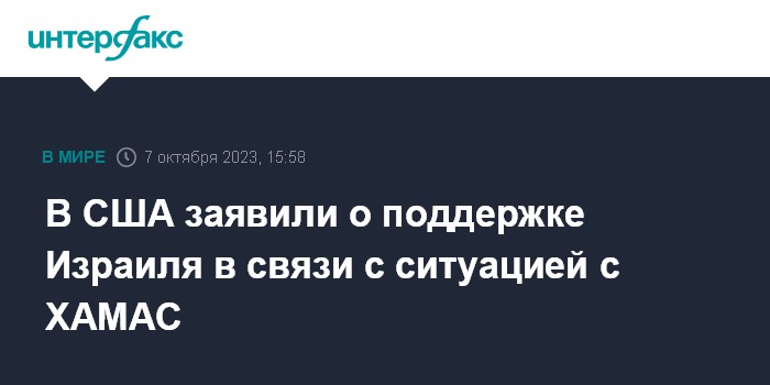 В США заявили о поддержке Израиля в связи с ситуацией с ХАМАС
