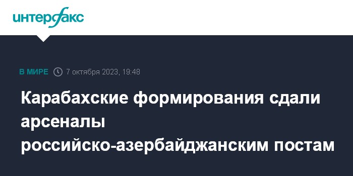 Карабахские формирования сдали арсеналы российско-азербайджанским постам