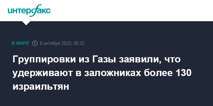 Группировки из Газы заявили, что удерживают в заложниках более 130 израильтян