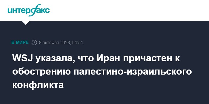 Москва. 9 октября. INTERFAX.RU - Нынешние действия движения ХАМАС против Израиля были спланированы заранее при содействии Ирана, утверждает издание The Wall Street Journal.