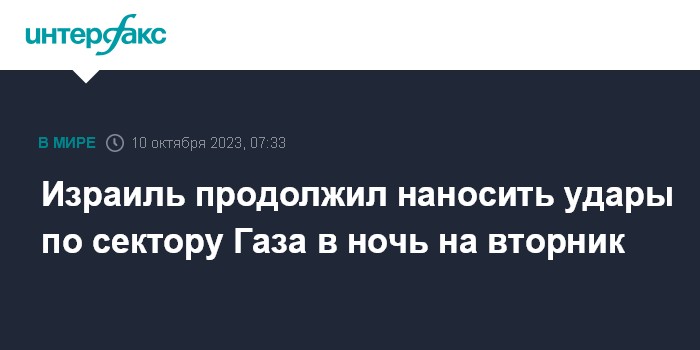 Москва. 10 октября. INTERFAX.RU - Израиль продолжил атаковать объекты в секторе Газа в ночь на вторник, сообщила газета Times of Israel.