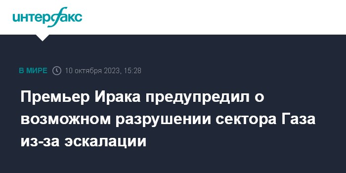 Москва. 10 октября. INTERFAX.RU - Премьер-министр Ирака Мухаммед ас-Судани назвал обострение палестино-израильского конфликта опасной эскалацией, которая ведет к разрушению сектора Газа.