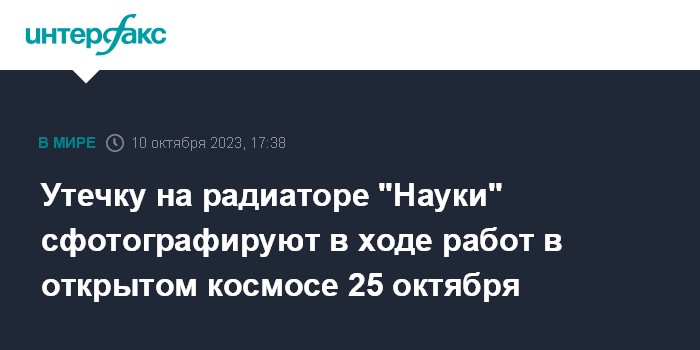 Утечку на радиаторе "Науки" сфотографируют в ходе работ в открытом космосе 25 октября