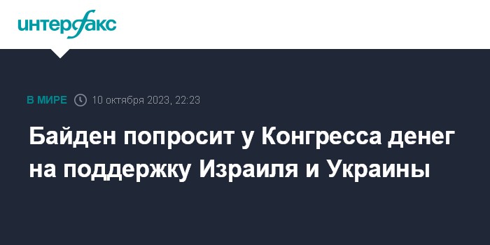 "Речь пойдет о запросе в Конгресс для Израиля. Также будет повторный запрос для Украины", - сказал он на брифинге в Белом доме.
