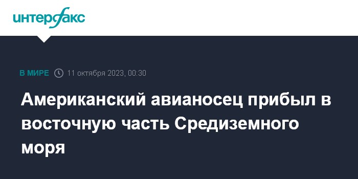 Москва. 11 октября. INTERFAX.RU - Авианосец США USS Gerald Ford, прибыл во вторник в восточную часть Средиземного моря, сообщает американское военное командование.