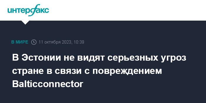 В Эстонии не видят серьезных угроз стране в связи с повреждением Balticconnector
