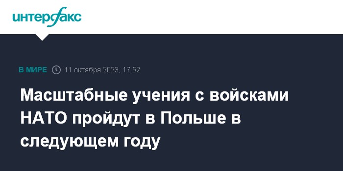 Москва. 11 октября. INTERFAX.RU - Масштабные учения с участием войск НАТО пройдут в Польше в следующем году, сообщил в среду начальник Генерального штаба Войска Польского Веслав Кукула.