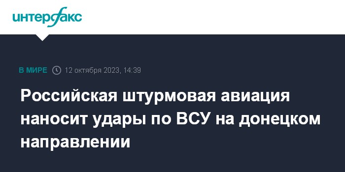Москва. 12 октября. INTERFAX.RU - Российские военные наносят удары по позициям вооруженных сил Украины (ВСУ) на донецком направлении, в том числе в районе Авдеевки, заявил официальный представитель Минобороны РФ Игорь Конашенков.
