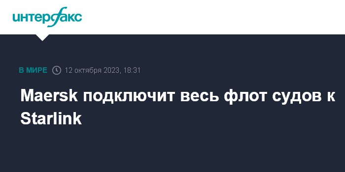 Москва. 12 октября. INTERFAX.RU - Датская транспортно-логистическая компания A.P. Moeller-Maersk AS заключила соглашение со SpaceX об обеспечении доступа к высокоскоростному спутниковому интернету системы Starlink для всего своего флота контейнеровозов, насчитывающего свыше 330 судов.