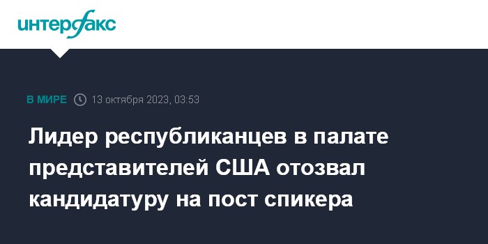 Лидер республиканцев в палате представителей США отозвал кандидатуру на пост спикера