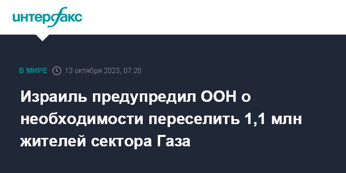 Израиль предупредил ООН о необходимости переселить 1,1 млн жителей сектора Газа