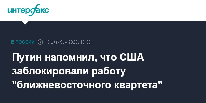 Путин напомнил, что США заблокировали работу "ближневосточного квартета"