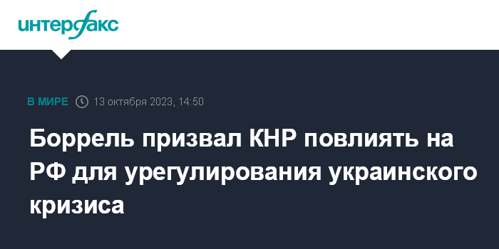Москва. 13 октября. INTERFAX.RU - Глава дипломатии ЕС Жозеп Боррель сообщил о просьбе к властям Китая оказать воздействие на Россию с целью урегулировать конфликт на Украине и возродить черноморскую зерновую инициативу.