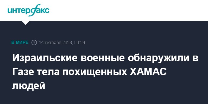 Израильские военные обнаружили в Газе тела похищенных ХАМАС людей
