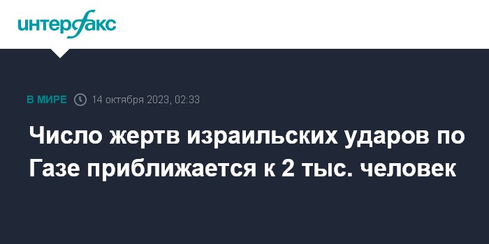 Москва. 14 октября. INTERFAX.RU - Не менее 1,9 тыс. человек погибли из-за ударов Израиля по сектору Газа с 7 октября, сообщают в ночь на субботу израильские СМИ со ссылкой на палестинские медицинские службы.