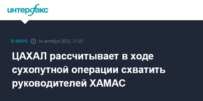 ЦАХАЛ рассчитывает в ходе сухопутной операции схватить руководителей ХАМАС