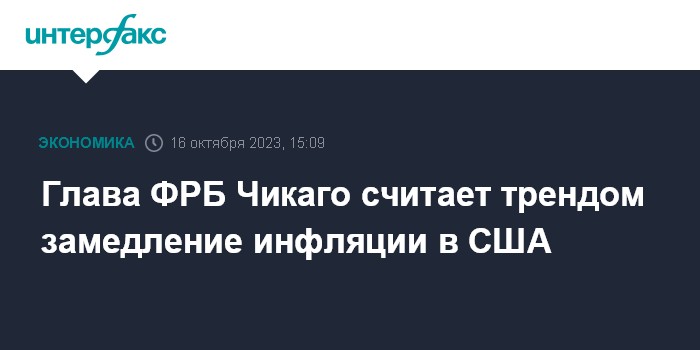 Глава ФРБ Чикаго считает трендом замедление инфляции в США