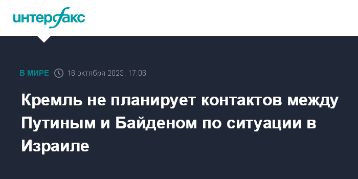 Кремль не планирует контактов между Путиным и Байденом по ситуации в Израиле