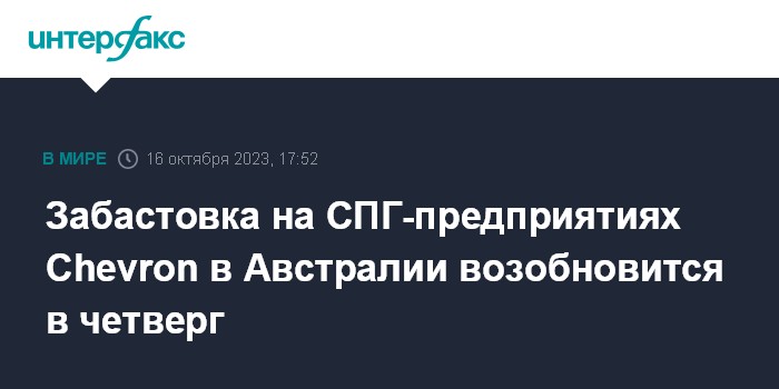 Забастовка на СПГ-предприятиях Chevron в Австралии возобновится в четверг