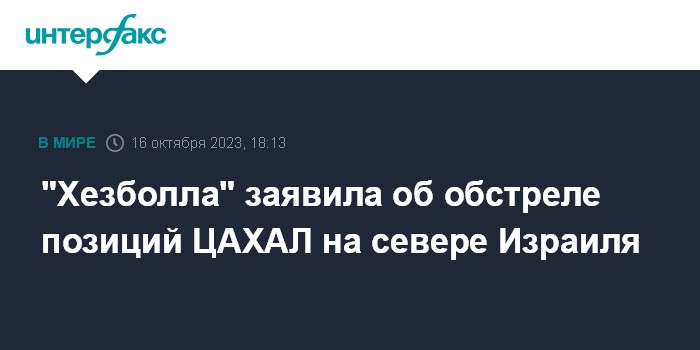 Москва. 16 октября. INTERFAX.RU - Ливанская группировка "Хезболла" в понедельник объявила, что нанесла удары по позициям армии обороны Израиля (ЦАХАЛ) на севере израильской территории, сообщает Al Arabiya.