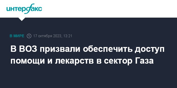 В ВОЗ призвали обеспечить доступ помощи и лекарств в сектор Газа