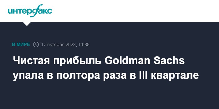 Москва. 17 октября. INTERFAX.RU - Американский банк Goldman Sachs Group в третьем квартале 2023 года резко сократил чистую прибыль, при этом показатель выручки изменился слабо. Оба показателя оказались лучше ожиданий рынка.