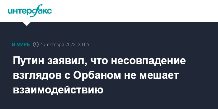 Путин заявил, что несовпадение взглядов с Орбаном не мешает взаимодействию
