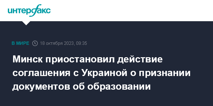 Минск приостановил действие соглашения с Украиной о признании документов об образовании