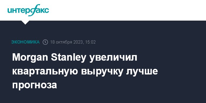 Москва. 18 октября. INTERFAX.RU - Morgan Stanley, один из крупнейших банков США, зафиксировал чистую прибыль и выручку выше прогнозов рынка в третьем квартале 2023 года.