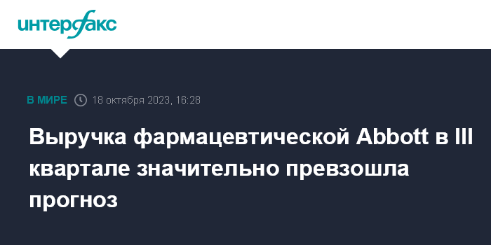 Выручка фармацевтической Abbott в III квартале значительно превзошла прогноз