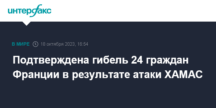 Подтверждена гибель 24 граждан Франции в результате атаки ХАМАС