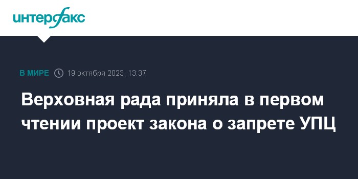 Москва. 19 октября. INTERFAX.RU - Депутаты Верховной рады приняли в первом чтении правительственный проект закона №8371, предусматривающий запрет Украинской православной церкви (УПЦ).