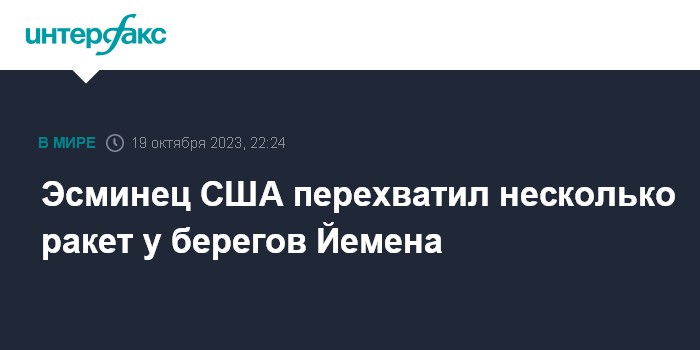 Эсминец США перехватил несколько ракет у берегов Йемена