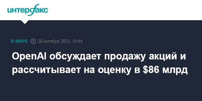 Москва. 20 октября. INTERFAX.RU - Американская OpenAI, разработчик популярного чат-бота ChatGPT, ведет переговоры с инвесторами о продаже своих акций при общей оценке компании в $86 млрд. Об этом пишет Financial Times со ссылкой на информированные источники.
