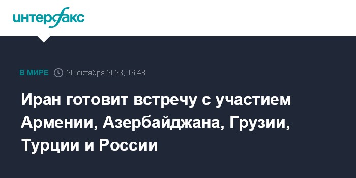 Москва. 20 октября. INTERFAX.RU - Ереван получил от Тегерана приглашение на встречу в региональном формате "3+3" с участием Армении, Азербайджана, Грузии, Турции, России и Ирана.
