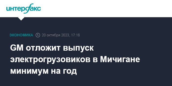 Москва. 20 октября. INTERFAX.RU - General Motors Co. сообщила, что откладывает производство электрических грузовиков на заводе в штате Мичиган как минимум на год.