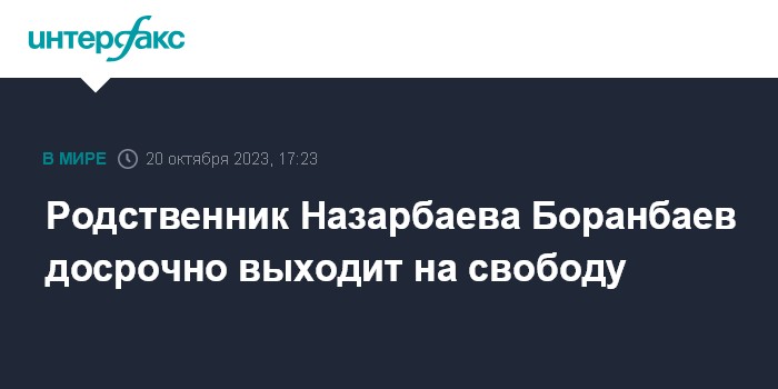 Родственник Назарбаева Боранбаев досрочно выходит на свободу