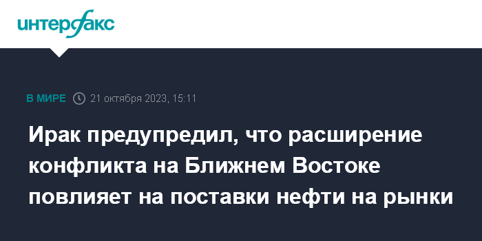 Ирак предупредил, что расширение конфликта на Ближнем Востоке повлияет на поставки нефти на рынки