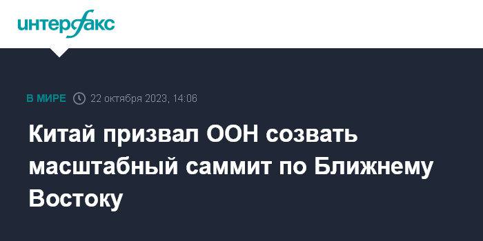 Китай призвал ООН созвать масштабный саммит по Ближнему Востоку