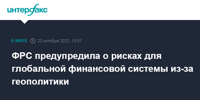 ФРС предупредила о рисках для глобальной финансовой системы из-за геополитики