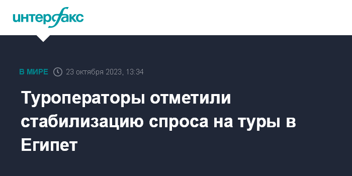 Москва. 23 октября. INTERFAX.RU - Спрос и цены на туры в Египет начали стабилизироваться после снижения в середине октября, сообщает пресс-служба Российского союза туриндустрии (РСТ).