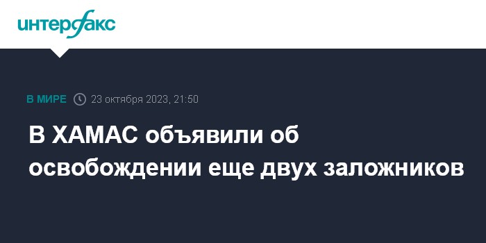 20 октября ХАМАС согласился освободить двух гражданок США, захваченных 7 октября.