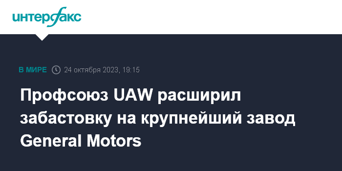Профсоюз UAW расширил забастовку на крупнейший завод General Motors