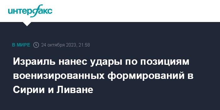 Москва. 24 октября. INTERFAX.RU - Армия обороны Израиля (ЦАХАЛ) во вторник нанесла серию ударов по позициям бойцов "Хезболлы", а также - по бойцам военизированных формирований в Сирии, сообщает во вторник The Times of Israel.