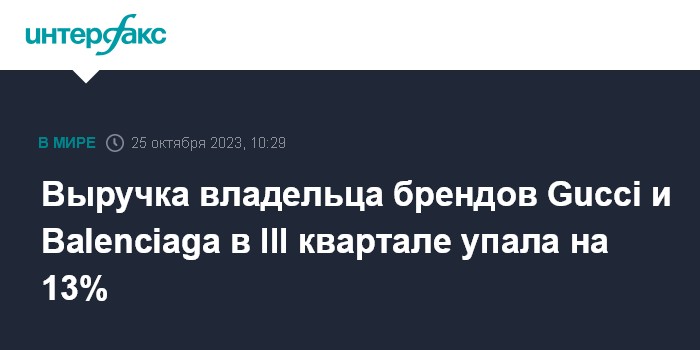 Выручка владельца брендов Gucci и Balenciaga в III квартале упала на 13%