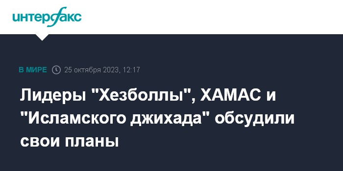 "Лидер "Хезболлы" Хасан Насралла обсудил с лидером ХАМАС и лидером "Исламского джихада" следующие шаги, которые эти три группировки намерены предпринять на этом чувствительном этапе", - пишет агентство со ссылкой на официальное заявление по итогам встречи.